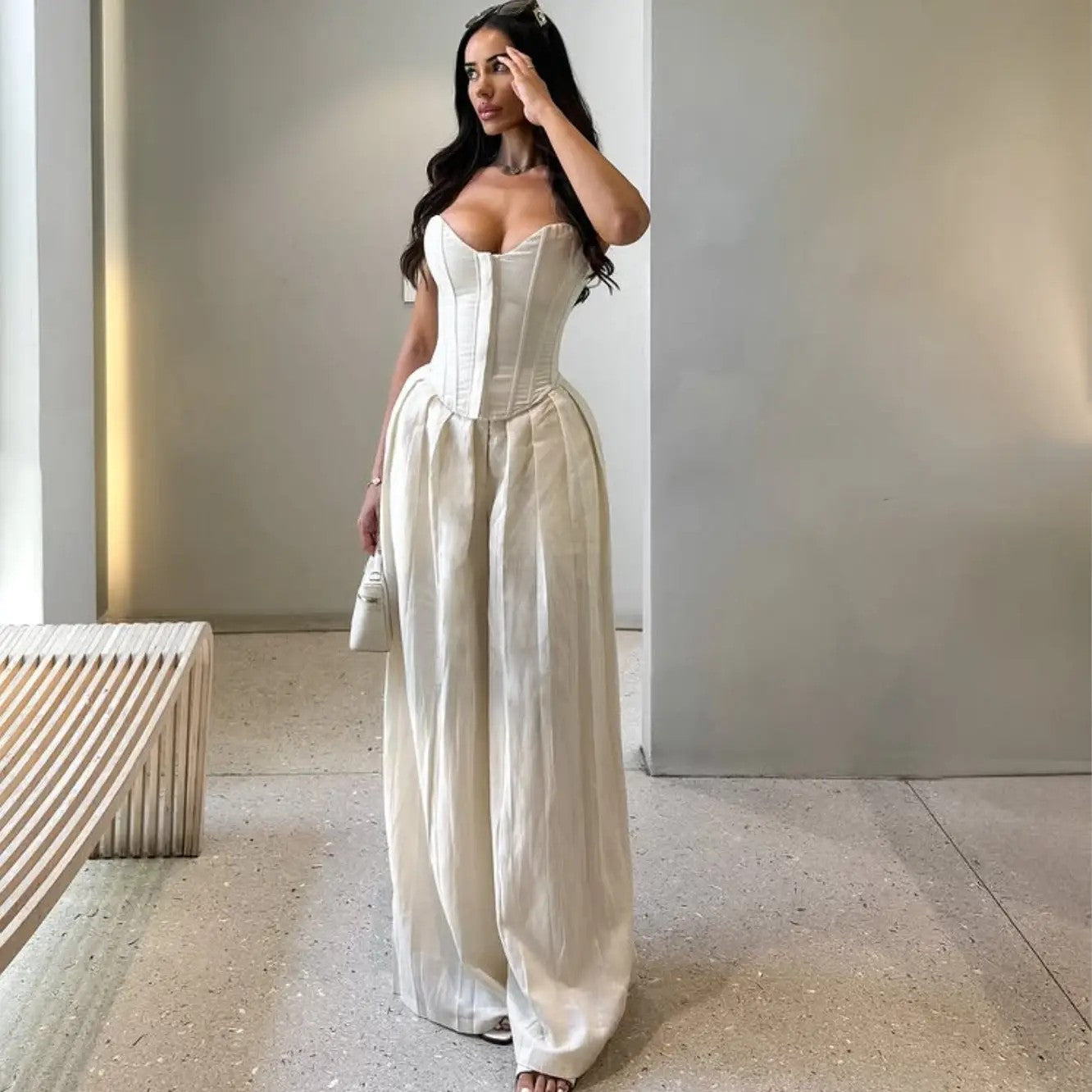 Expertly designed for a stunning silhouette, our Elegant Corset features a strapless, backless design that accentuates your curves. The medium elasticity of the polyester/spandex fabric blend offers a comfortable fit while the solid white color adds a touch of sophistication. Perfect for summer 2025, this corset is a must-have for a sexy, cropped look.